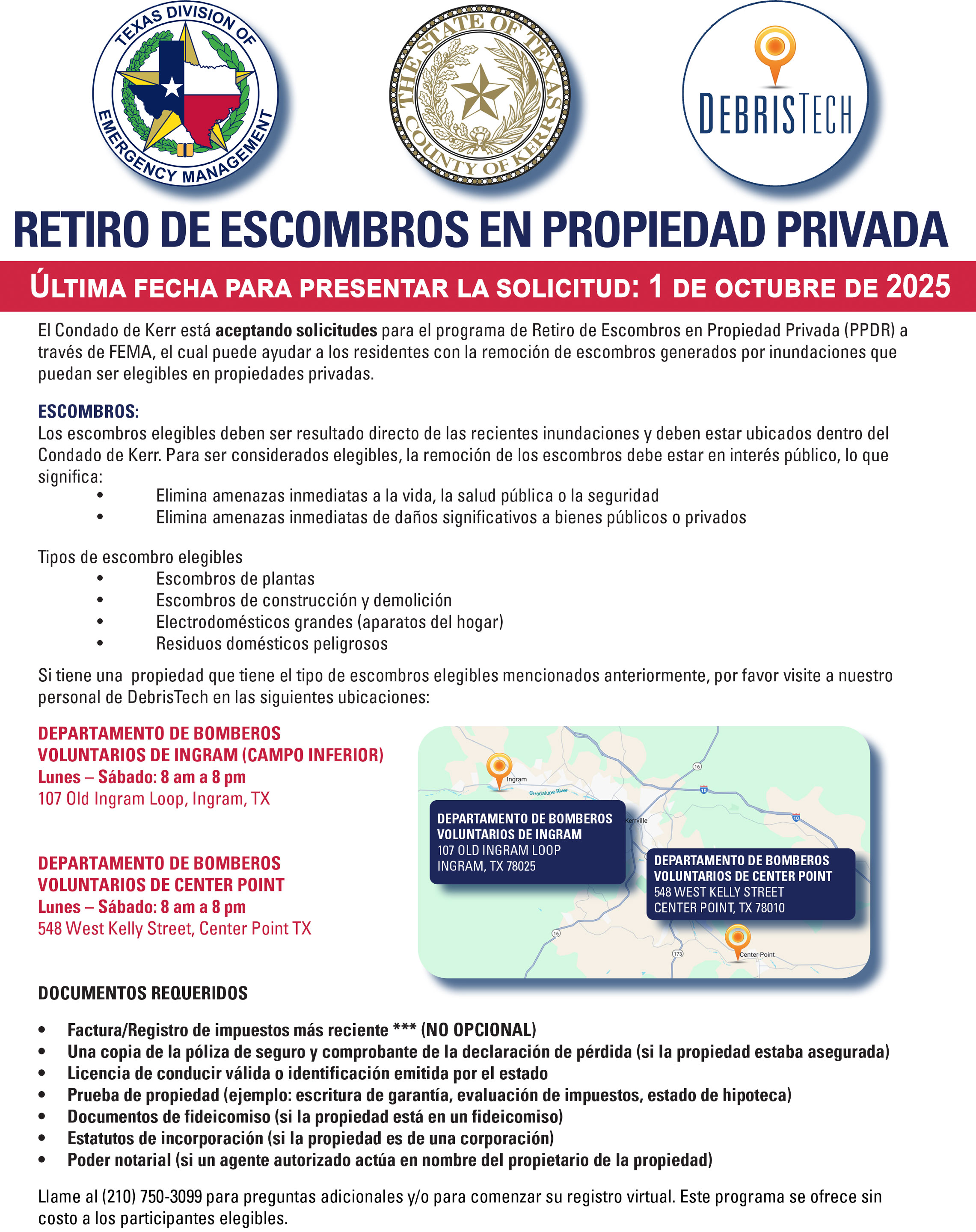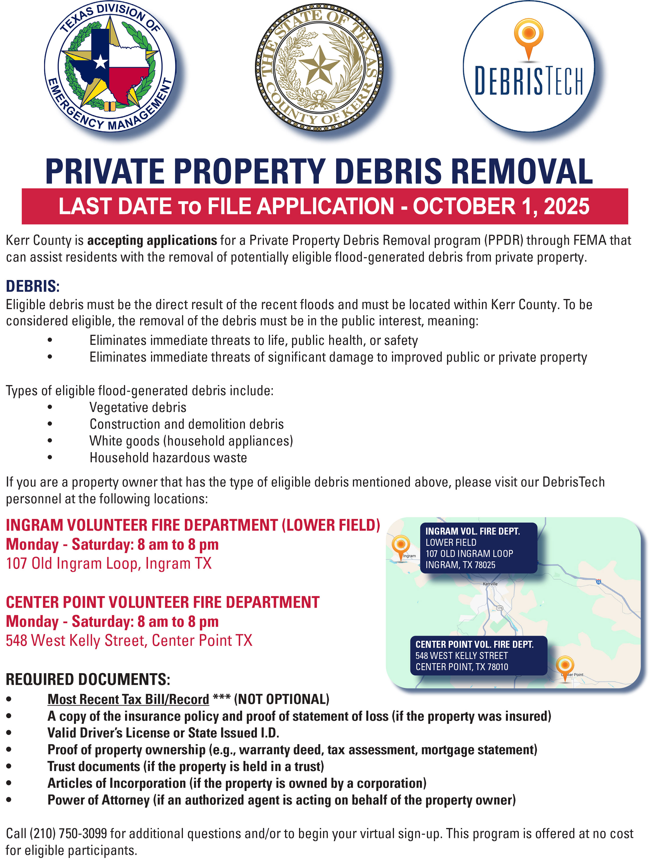 Deadline set Oct. 1 for Private Property Debris Removal requests in Kerr County