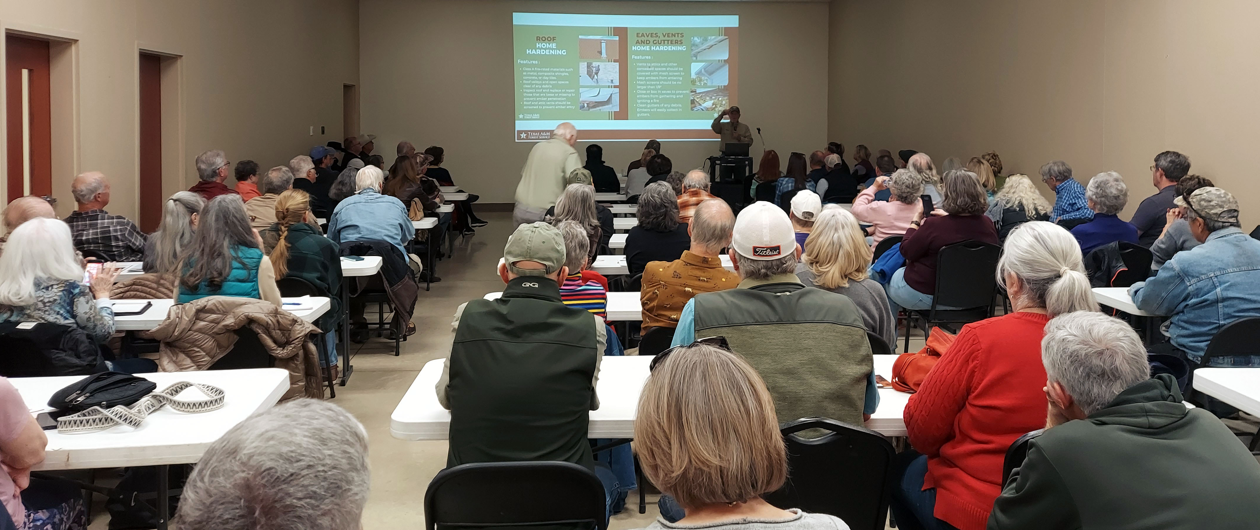 Hosted by Kerr County, Texas, the twin informational sessions drew nearly 200 people to the Hill Country Youth Event Center to learn about wildfire prevention and how mitigation efforts might qualify them for grant support.