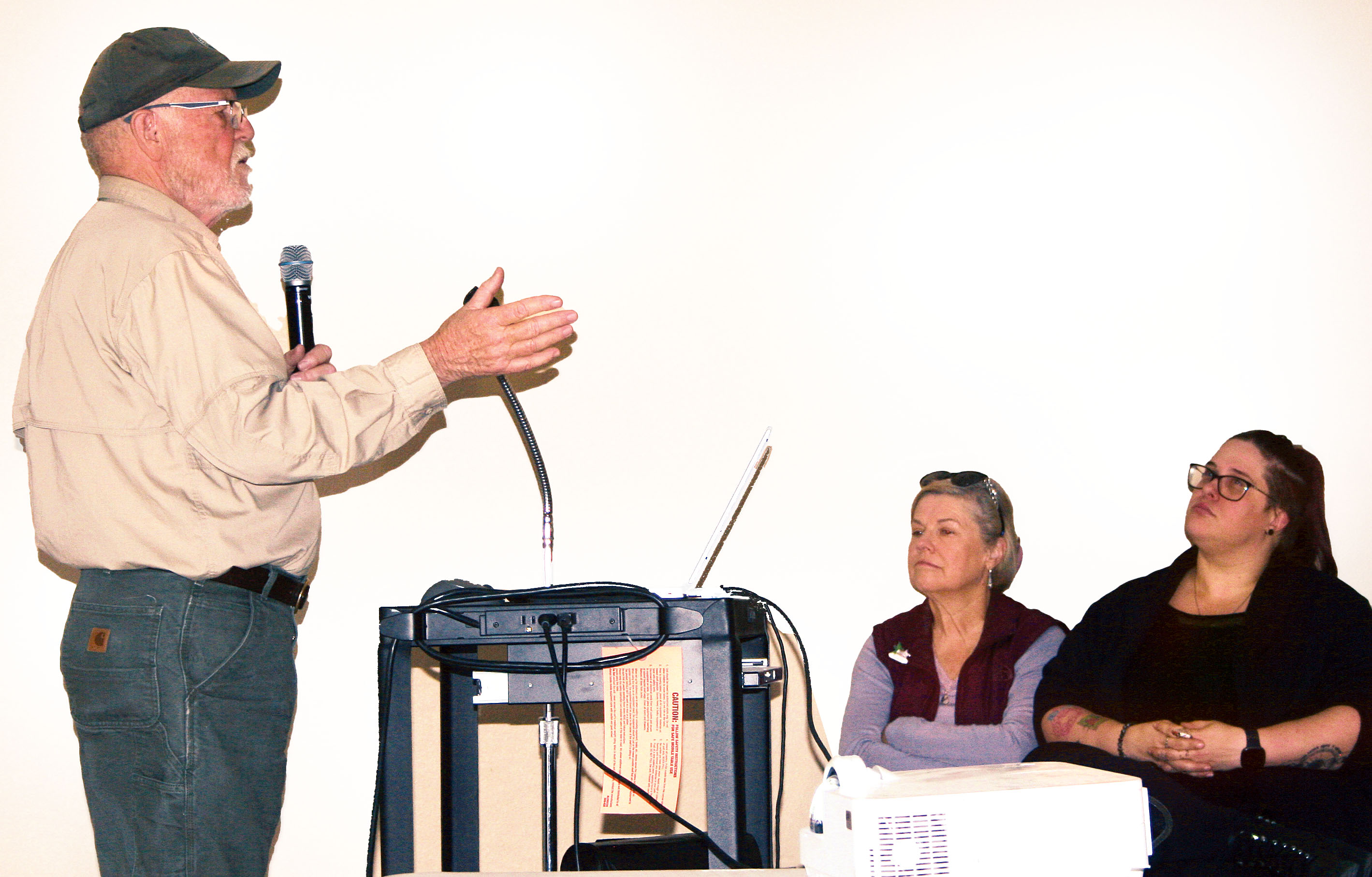 James Ward, of the Texas A&M Forest Service, offers key information to local residents on how to protect their properties and land from wildfires. With the out-of-control blazes that have recently devastated many portions of California, the threat is at the forefront of many minds in the Texas Hill Country. So much so, that the topic drew a good turnout (bottom photo) on Jan. 23 at the Hill Country Youth Event Center. -- Photos by Lisa Walter/Kerr County Public Relations